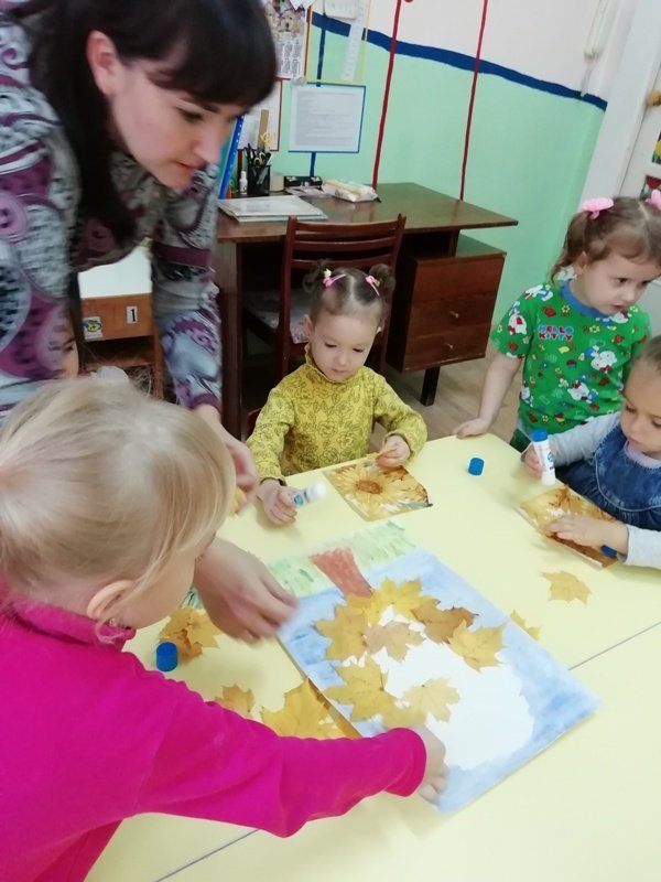 На данном занятии ребята узнали, что аппликацию можно делать не только из бумаги, но и из природного материала. Наклеивая листочки клена на лист бумаги, ребята развивали мелкую моторику, усидчивость, аккуратность и стремление до конца завершить начатую работу, учились работать коллективно.