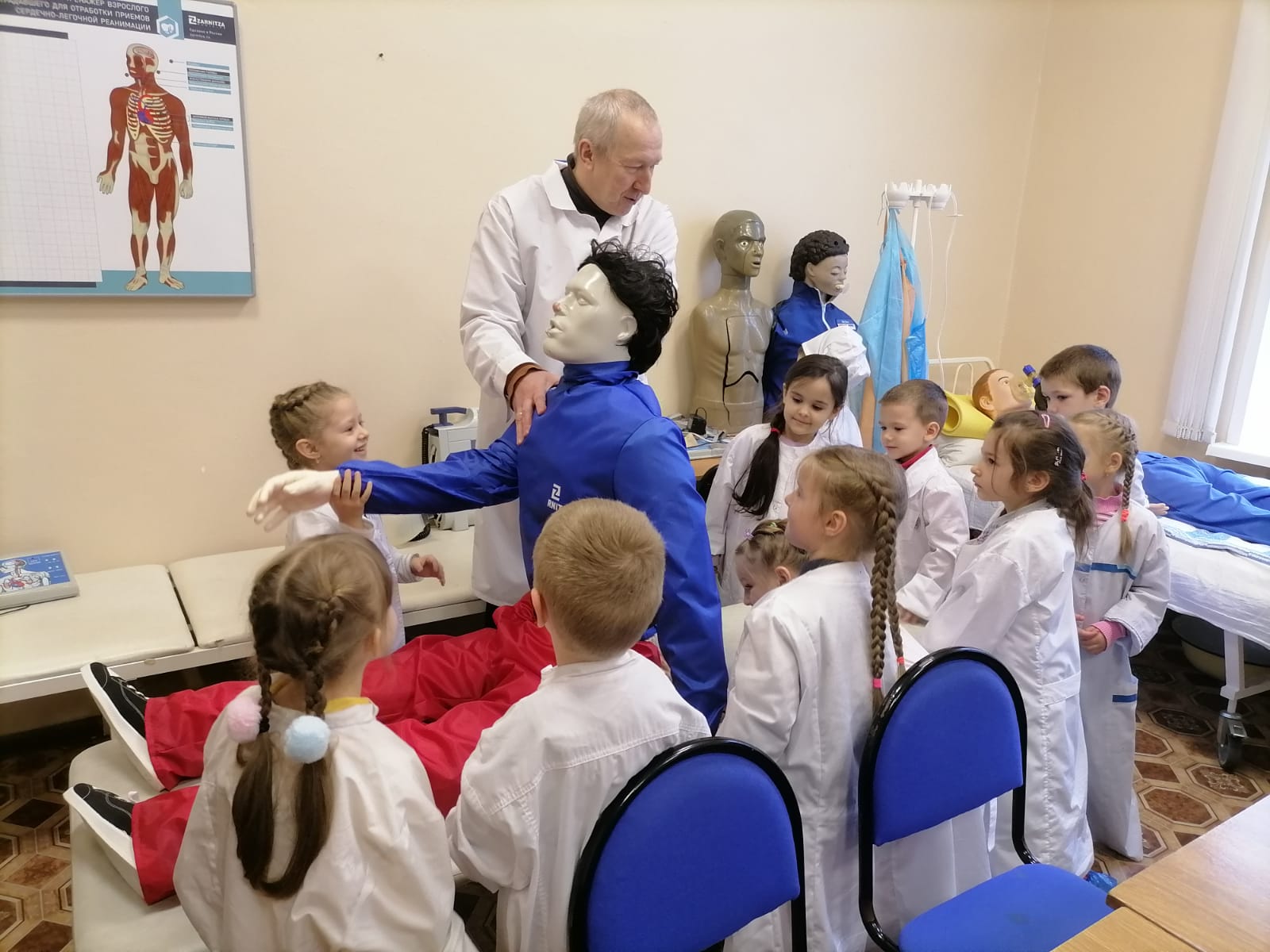 Не только интересной, но и очень познавательной стала экскурсия для дошкольников. Все студенты, которых встречали дети, тепло их приветствовали. Учащимися колледжа для ребят была подготовлена целая программа: короткий фильм, рассказывающий о профессиях медсестры и фельдшера, интервью с детьми, загадки, и даже музыкальный подарок и небольшие презенты. В ответ дошкольники рассказали стихи и преподнесли свои подарки, которые сделали для музея колледжа. Но особый восторг у воспитанников детского сада был вызван посещением лаборатории по отработке навыков (симуляционного обучения). Это удивительный мир, наполненный тренажерами и манекенами, на которых учащиеся колледжа учатся делать уколы, капельницы, операции и т.п. Попробовали себя в роли медицинских работников и наши воспитанники. И, конечно же, многие из них захотели посвятить свою жизнь медицине.